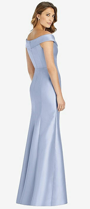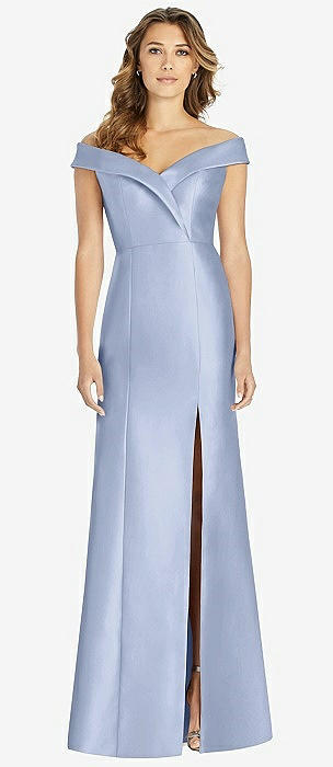 Off-the-Shoulder Cuff Trumpet Gown with Front Slit in sky blue