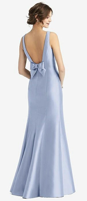 Sleeveless Satin Trumpet Gown with Bow at Open-Back in sky blue
