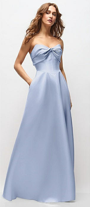 Strapless Satin Column Maxi Dress with Oversized Handcrafted Bow in sky blue