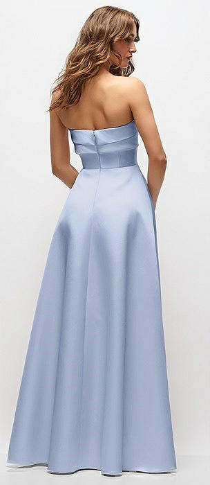 Strapless Pleated U-Wire Satin Column Maxi Dress in sky blue