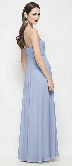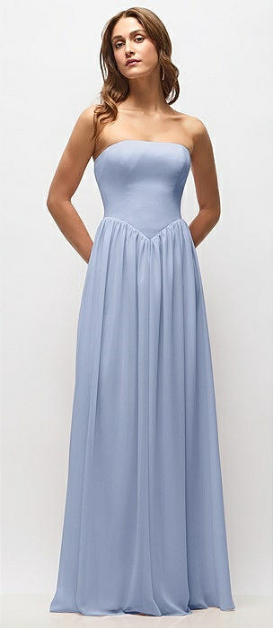 Strapless Basque Drop Waist Chiffon Maxi Dress with Shirred Skirt in sky blue