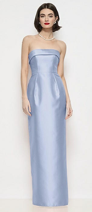 Strapless Satin Column Dress with Removeable Watteau Train in sky blue