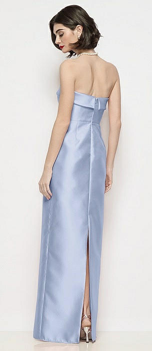 Strapless Cuff Satin Maxi Dress with Column Skirt & Back Bow in sky blue