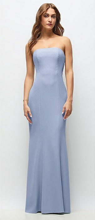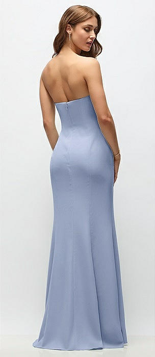Strapless Fit and Flare Crepe Maxi Dress in sky blue