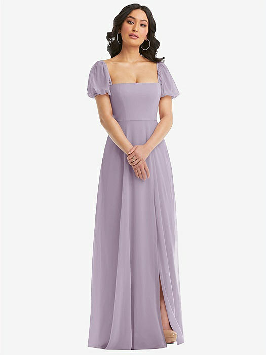 Bow Shoulder Square Neck Chiffon Maxi Dress in mist