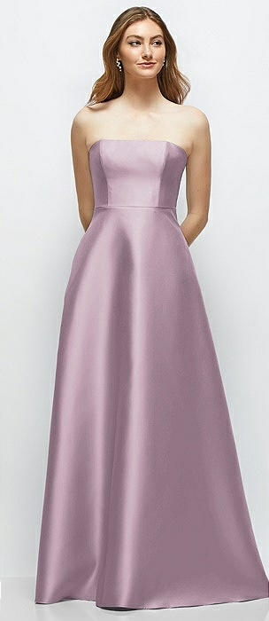 Strapless Satin Drop Waist Gown with Full Skirt in suede rose