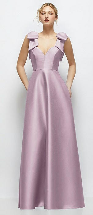 Deep V-Neck Satin Ball Gown with Shoulder Bows in suede rose