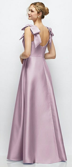Asymmetrical Bow Off-Shoulder Satin Gown with Ballroom Skirt in suede rose