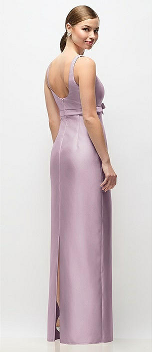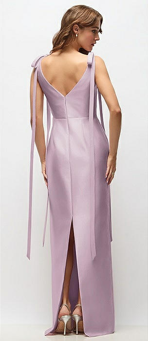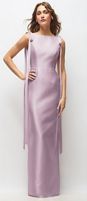 Bateau Neck Satin Column Maxi Dress with Exaggerated Tail Bow Straps in suede rose
