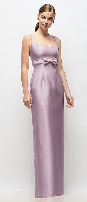 Scoop Neck Satin Column Maxi Dress with Bow at Empire Waist in suede rose