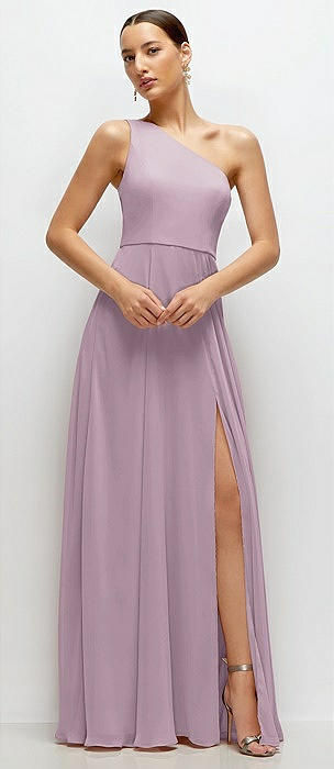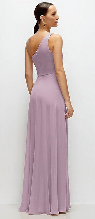 Chiffon One-Shoulder Maxi Dress with Circle Skirt in suede rose