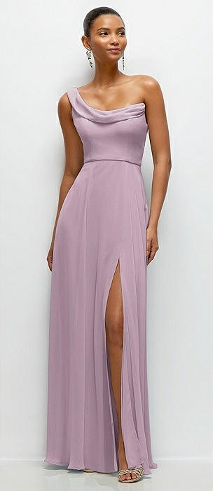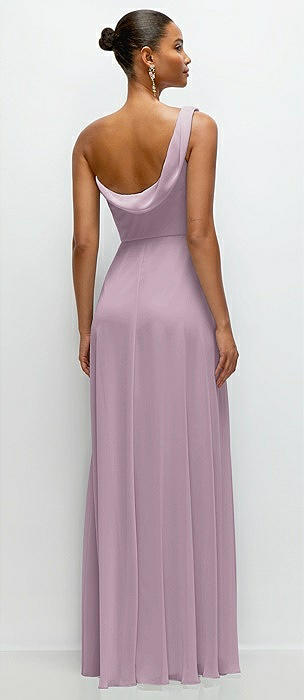 Chiffon One-Shoulder Maxi Dress with Draped Cowl Neckline in suede rose