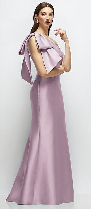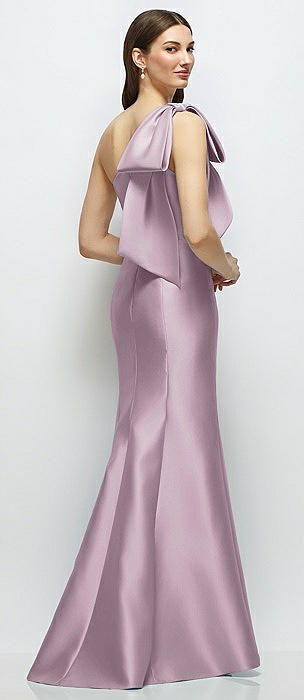 Bow One-Shoulder Satin Trumpet Gown in suede rose
