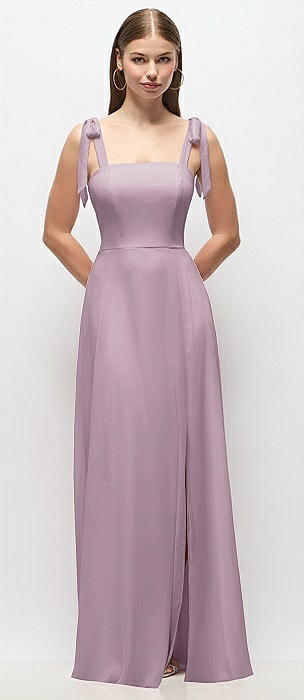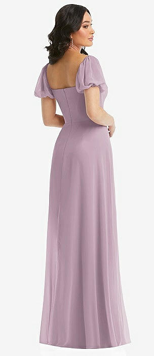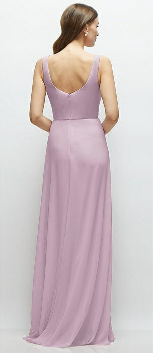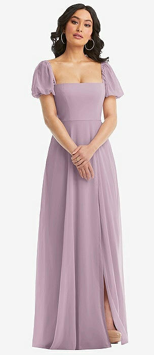 Bow Shoulder Square Neck Chiffon Maxi Dress in suede rose