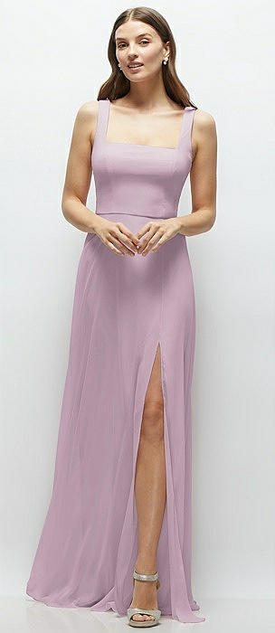 Square Neck Chiffon Maxi Dress with Circle Skirt in suede rose