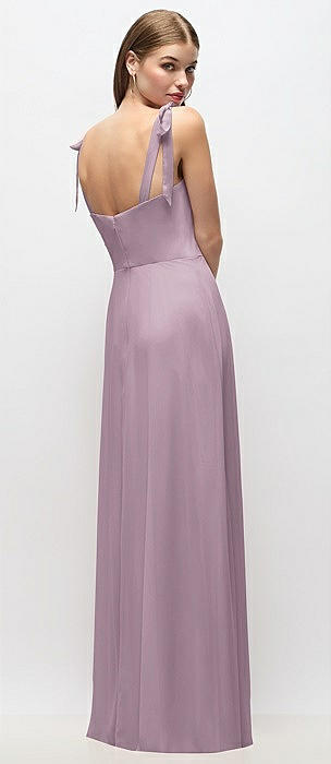 Tie-Shoulder Chiffon Maxi Dress with Front Slit in suede rose