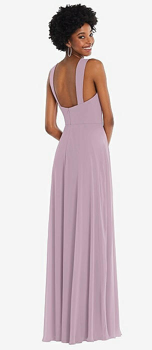 Open Neckline Cutout Satin Twill A-Line Gown with Pockets in suede rose