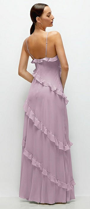 Bustier-Style Chiffon Tiered Ruffle Maxi Dress with Adjustable Straps in suede rose