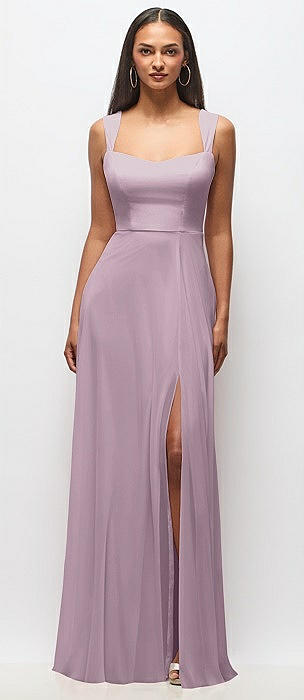 Ruffle Strap Chiffon Bustier Maxi Dress with Ruffle Hem A-Line Skirt in suede rose