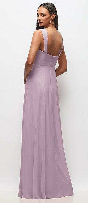 Convertible Ruffle Strap Chiffon Maxi Dress with Full Circle Skirt in suede rose