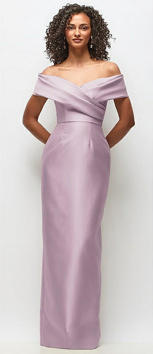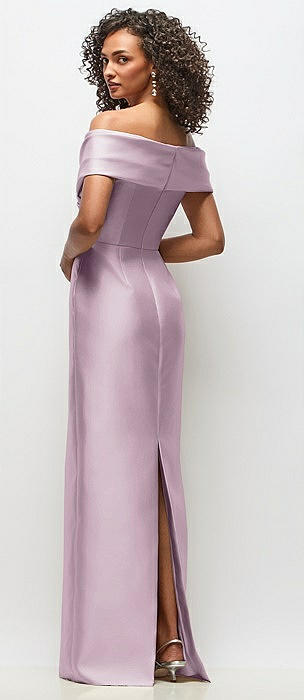 Off-the-Shoulder Cuff Trumpet Gown with Front Slit in suede rose