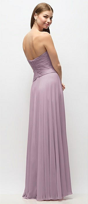 Strapless Pleated Surplice Chiffon Maxi Dress with A-Line Skirt in suede rose