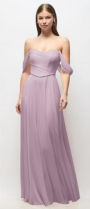 Off-the-Shoulder Basque Corset Chiffon Maxi Dress in suede rose