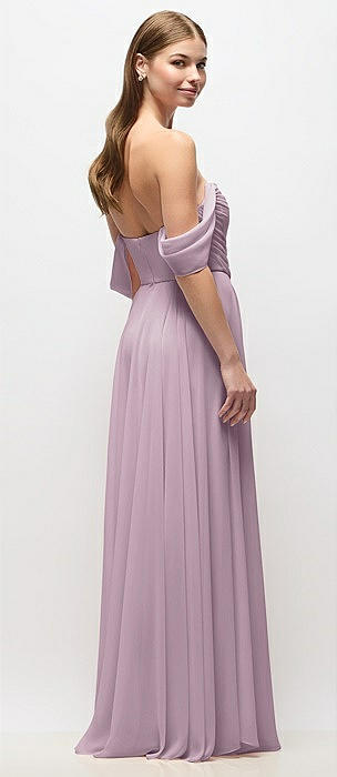 Off-the-Shoulder Draped Chiffon Maxi Dress in suede rose