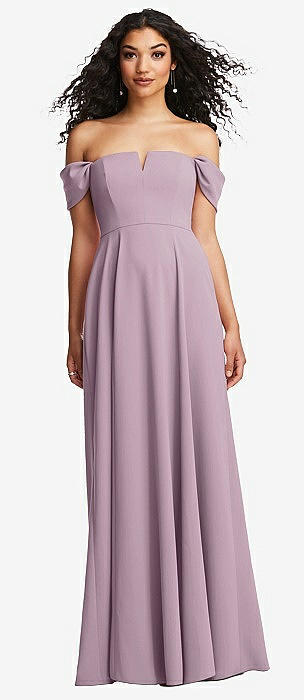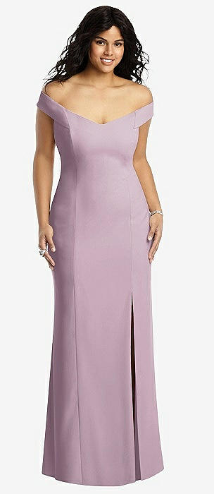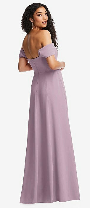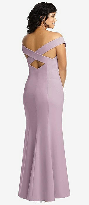 Off-the-Shoulder Criss Cross Back Trumpet Gown in suede rose