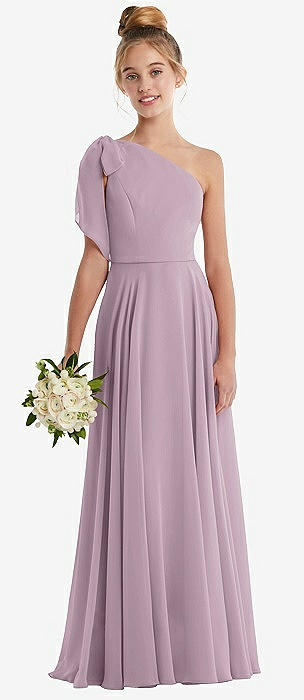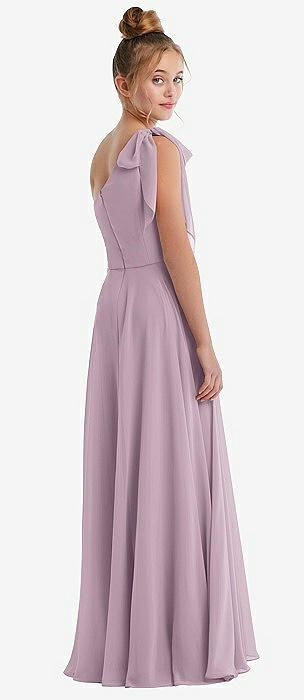 One-Shoulder Scarf Bow Chiffon Junior Bridesmaid Dress in suede rose