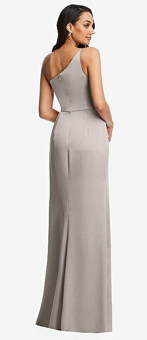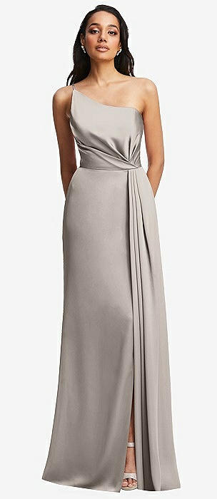 One-Shoulder Draped Skirt Satin Trumpet Gown