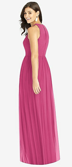 Shirred Skirt Jewel Neck Halter Dress with Front Slit