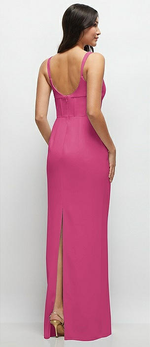 Corset-Style Crepe Column Maxi Dress with Adjustable Straps in tea rose