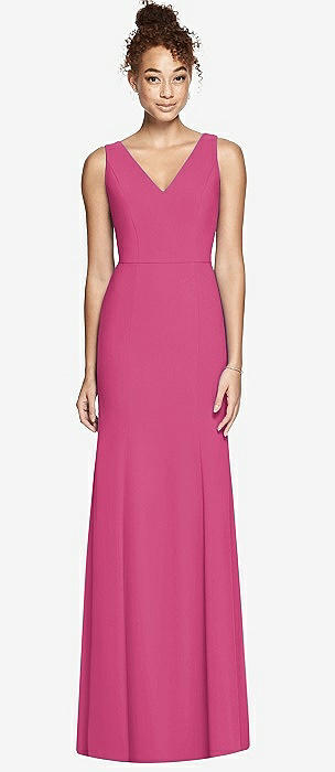 Shirred Shoulder Stretch Satin Mermaid Dress with Slight Train in tea rose
