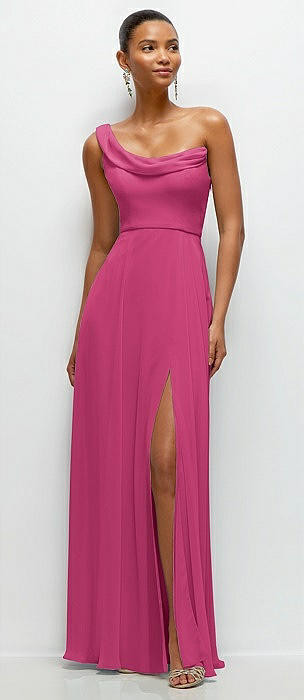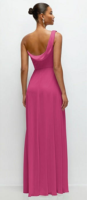 Chiffon One-Shoulder Maxi Dress with Draped Cowl Neckline in tea rose