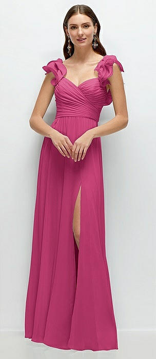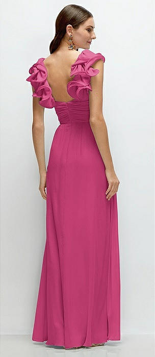 Dramatic Ruffle Edge Strap Chiffon Maxi Dress in tea rose