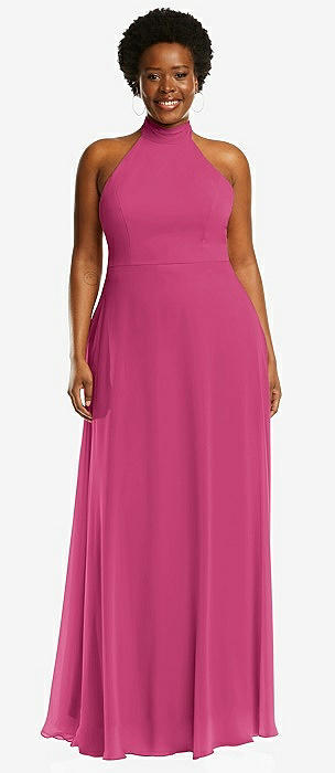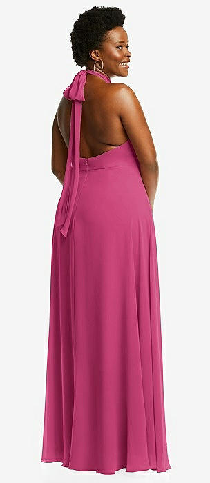 Shirred Halter Chiffon Maxi Dress with Back Sash-Tie Closure in tea rose