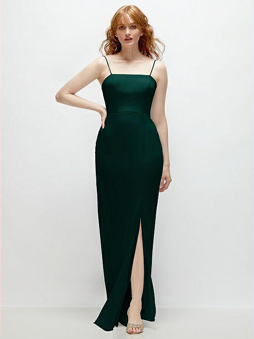 Tie-Back Cutout Trumpet Gown with Front Slit in evergreen