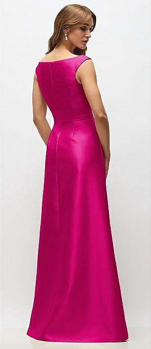 Basque-Neck Satin Column Maxi Dress with Off-the-Shoulder Bows in think pink