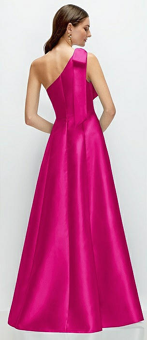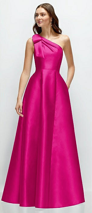 Bow One-Shoulder Full A-Line Satin Maxi Dress in think pink