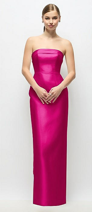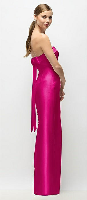 Strapless Cuff Satin Maxi Dress with Column Skirt & Back Bow in think pink
