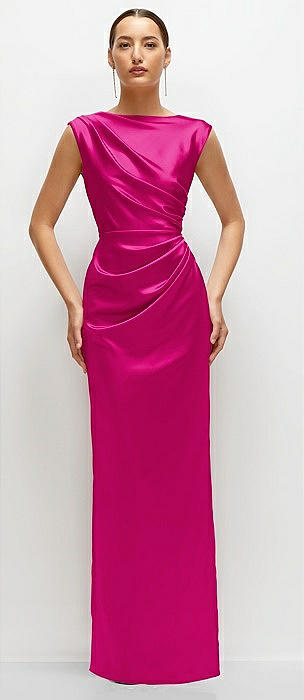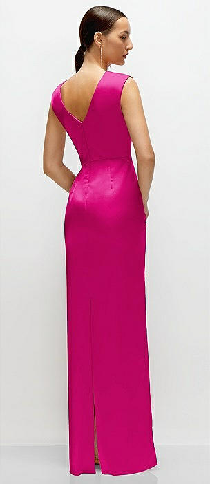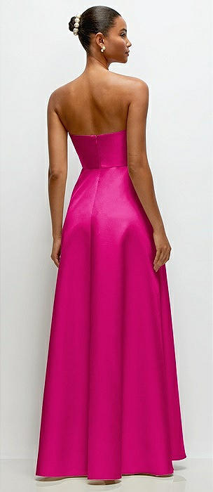 Strapless Satin Column Dress with Removeable Watteau Train in think pink
