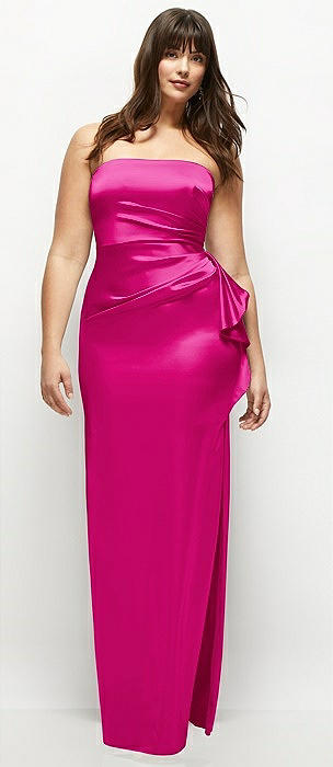 Strapless Cat-Eye Draped Bodice Satin Tumpet Dress in think pink