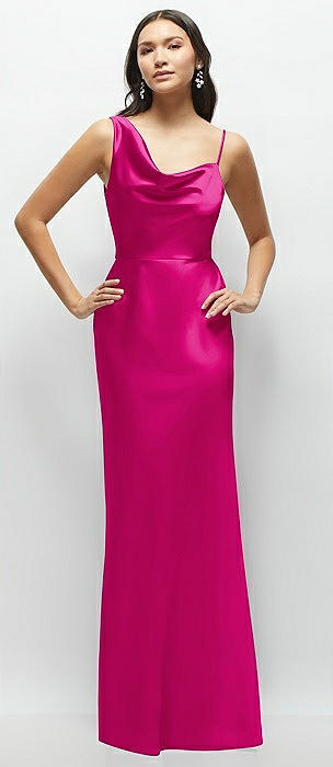 One-Shoulder Draped Cowl A-Line Satin Maxi Dress in think pink