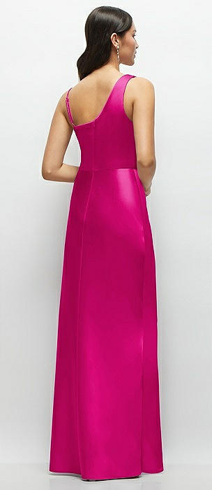 One-Shoulder Cat-Eye Neckline Fit and Flare Satin Maxi Dress in think pink