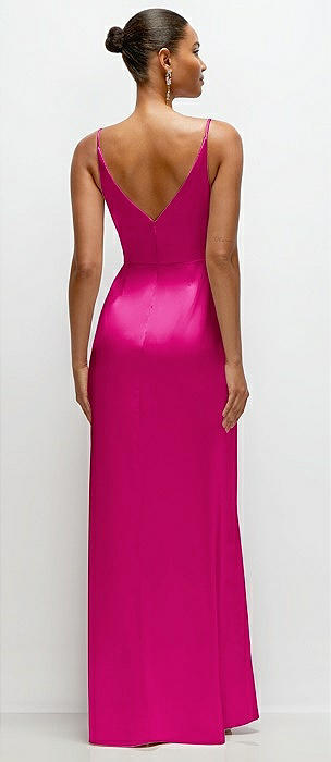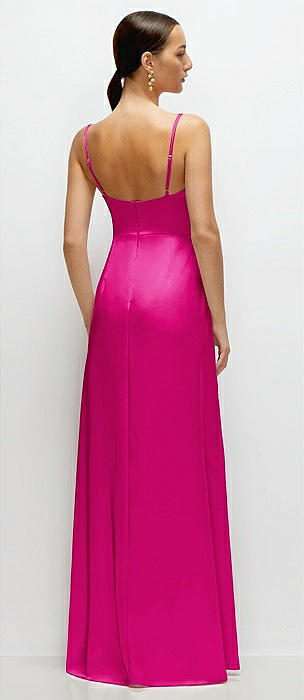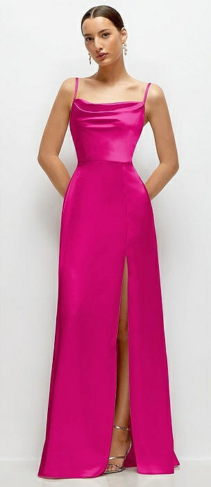 Cowl Neck Satin Maxi Dress with Adjustable Spaghetti Straps in think pink