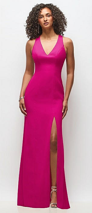 Sleeveless Cap Shoulder Crepe Maxi Dress with Trumpet Skirt in think pink