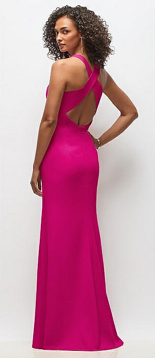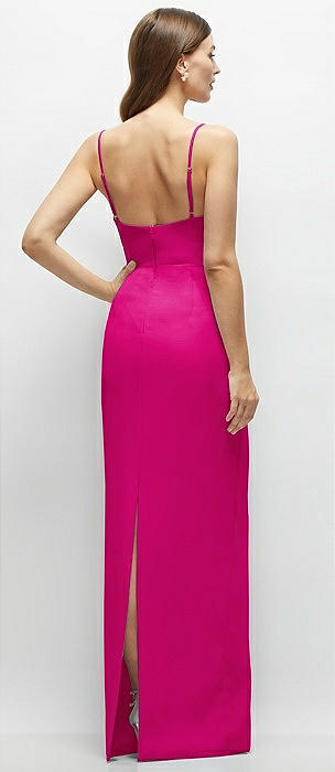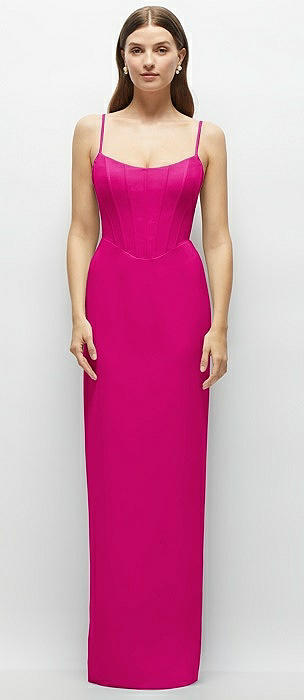 Corset-Style Crepe Column Maxi Dress with Adjustable Straps in think pink