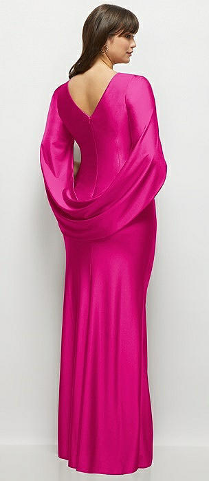 Draped Stretch Satin Maxi Dress with Built-in Capelet in think pink