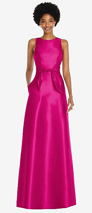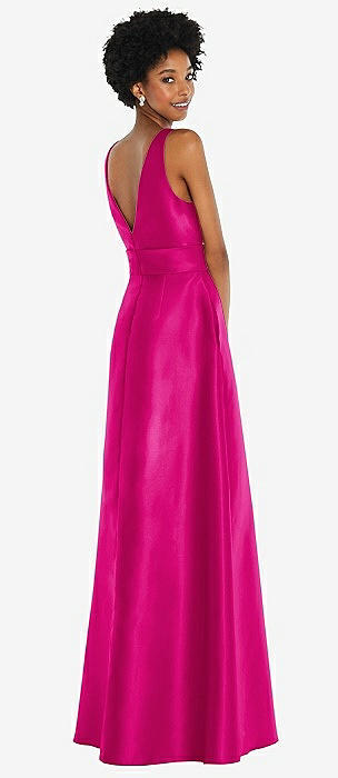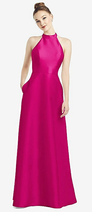 Open Neckline Cutout Satin Twill A-Line Gown with Pockets in think pink